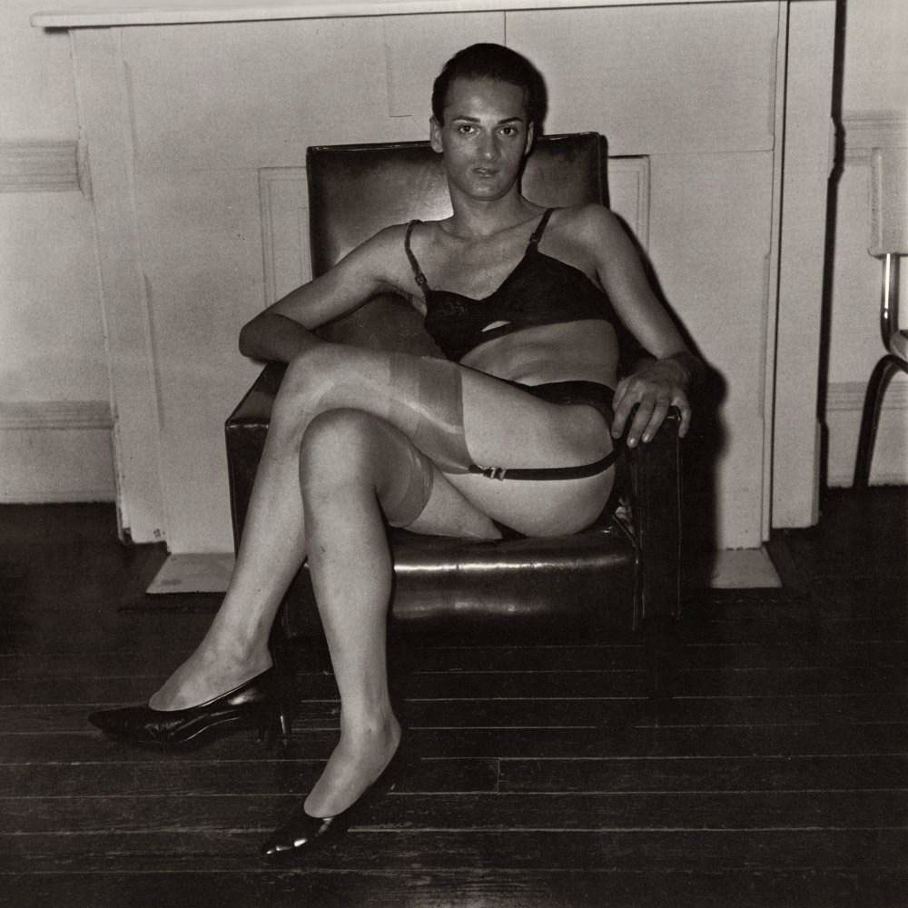 Seated man in a bra and stockings, N.Y.C., 1967