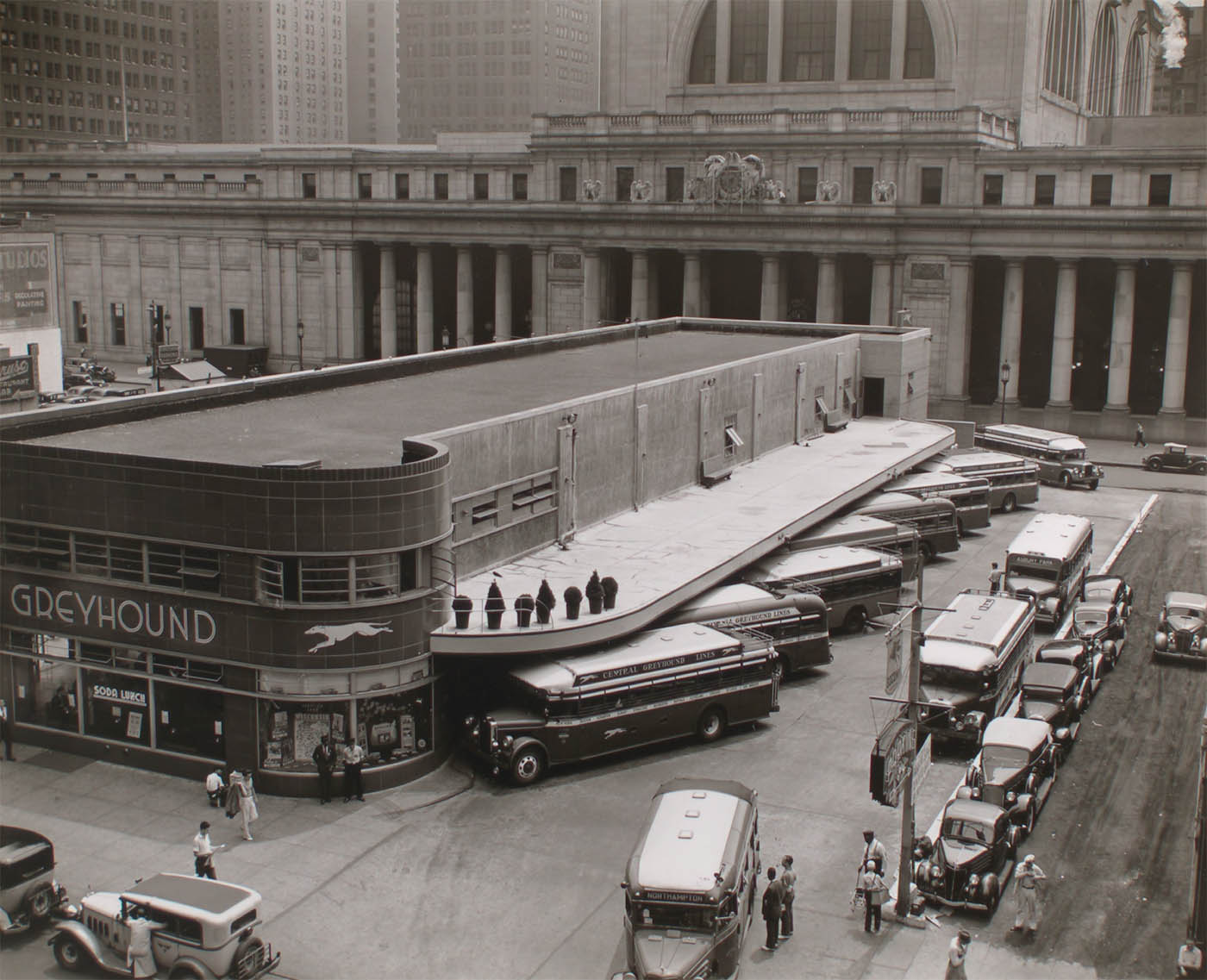 Greyhound Bus Terminal, 33rd and 34th Streets between Seventh and Eighth Avenues, Manhattan