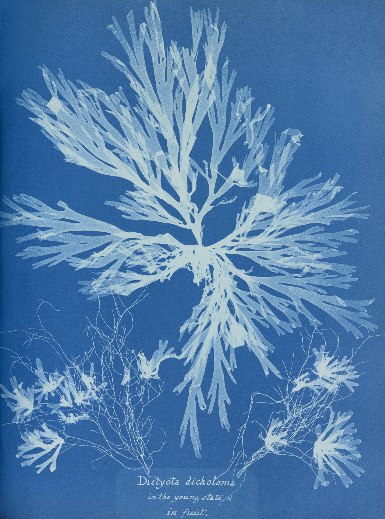 Dictyota dichotoma, in the young state & in fruit from Part XI of Photographs of British Algae: Cyanotype Impressions