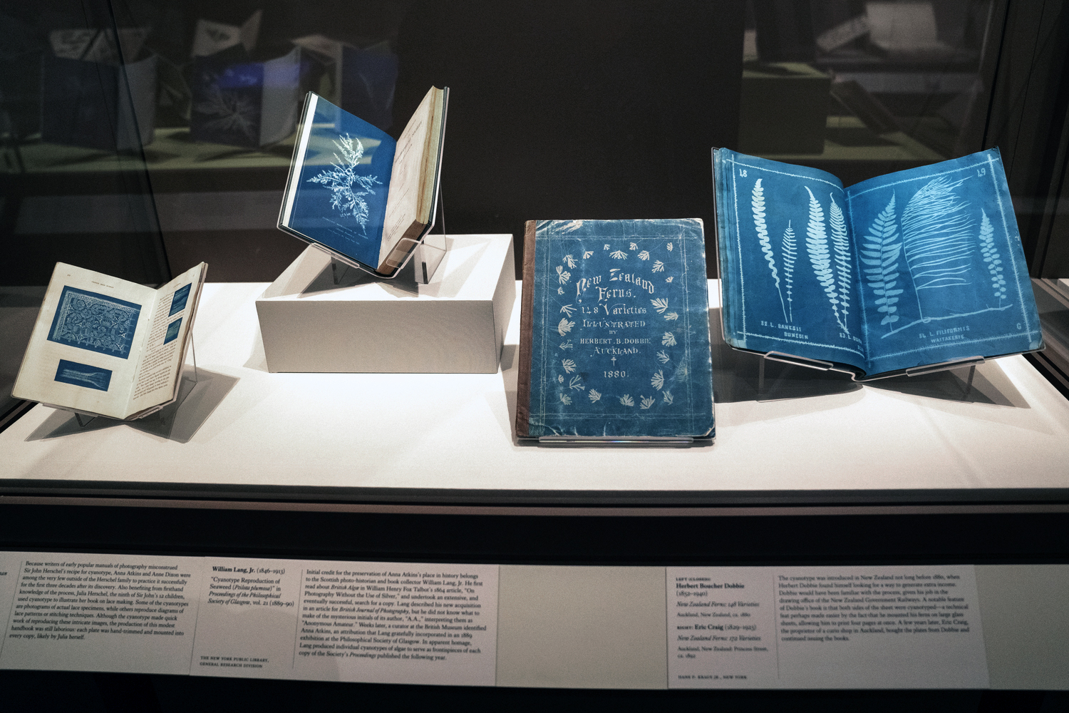Installation view of the exhibition Blue Prints: The Pioneering Photographs of Anna Atkins at The New York Public Library